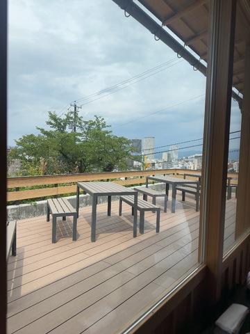今の時期は暑いですが、福井の町並みが見渡せるテラス席もおすすめです。私が座った席からは、福井駅が見えました